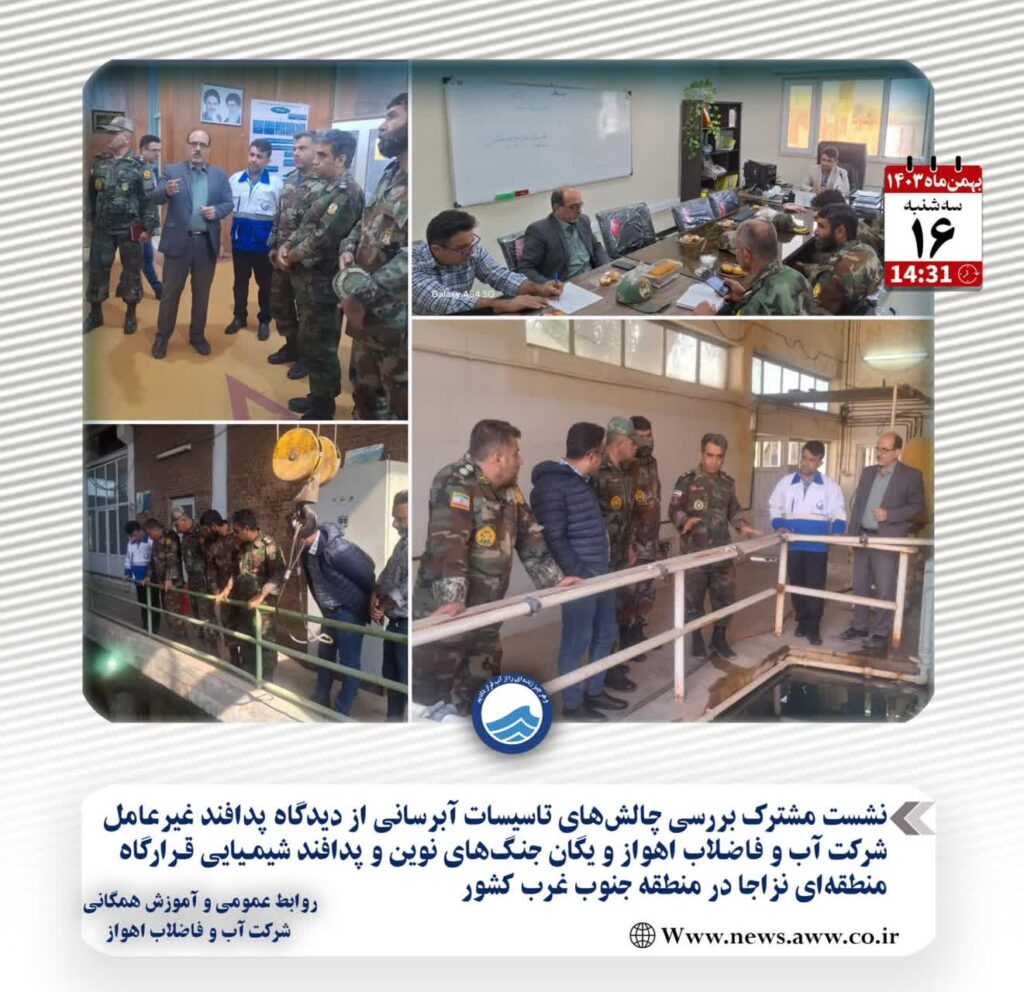 اهواز – عصر اتحاد: جلسه بررسی چالشهای تاسیسات آبرسانی از دیدگاه پدافند غیرعامل و برنامه ایمنی آب با مشارکت فرماندهان و کارشناسان ارتش جمهوری اسلامی ایران به میزبانی شرکت آب و فاضلاب اهواز برگزار شد.