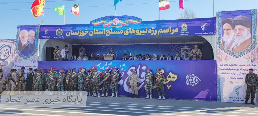 در رژه نیروهای مسلح خوزستان ، نیروهای سپاه پاسداران انقلاب اسلامی ، ارتش جمهوری اسلامی ایران ، نیروی انتظامی جمهوری اسلامی ایران و بسیج مستضعفین با عبور از محل جایگاه آمادگی خود را نشان دادند .